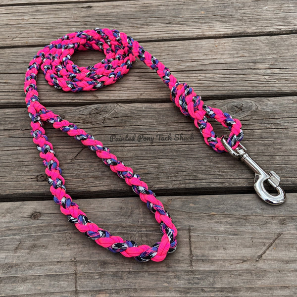 Braided leash made from the highest quality nylon 550 paracord. Perfect to take your furry friend on a long walk, durable and easy to use with a nickle plated swivel trigger snap!