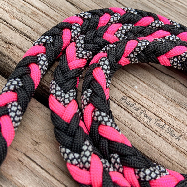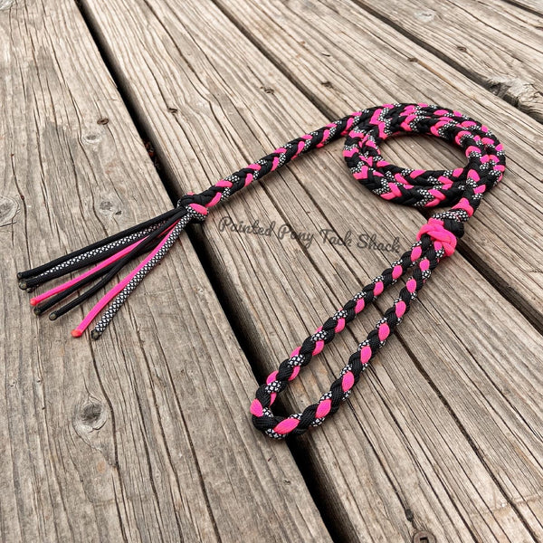 8 strand braided over under made from the highest quality nylon 550 paracord. This over under had an adjustable handle to attach to your saddle horn or wrist and finished with a paracord tassel on the end!
